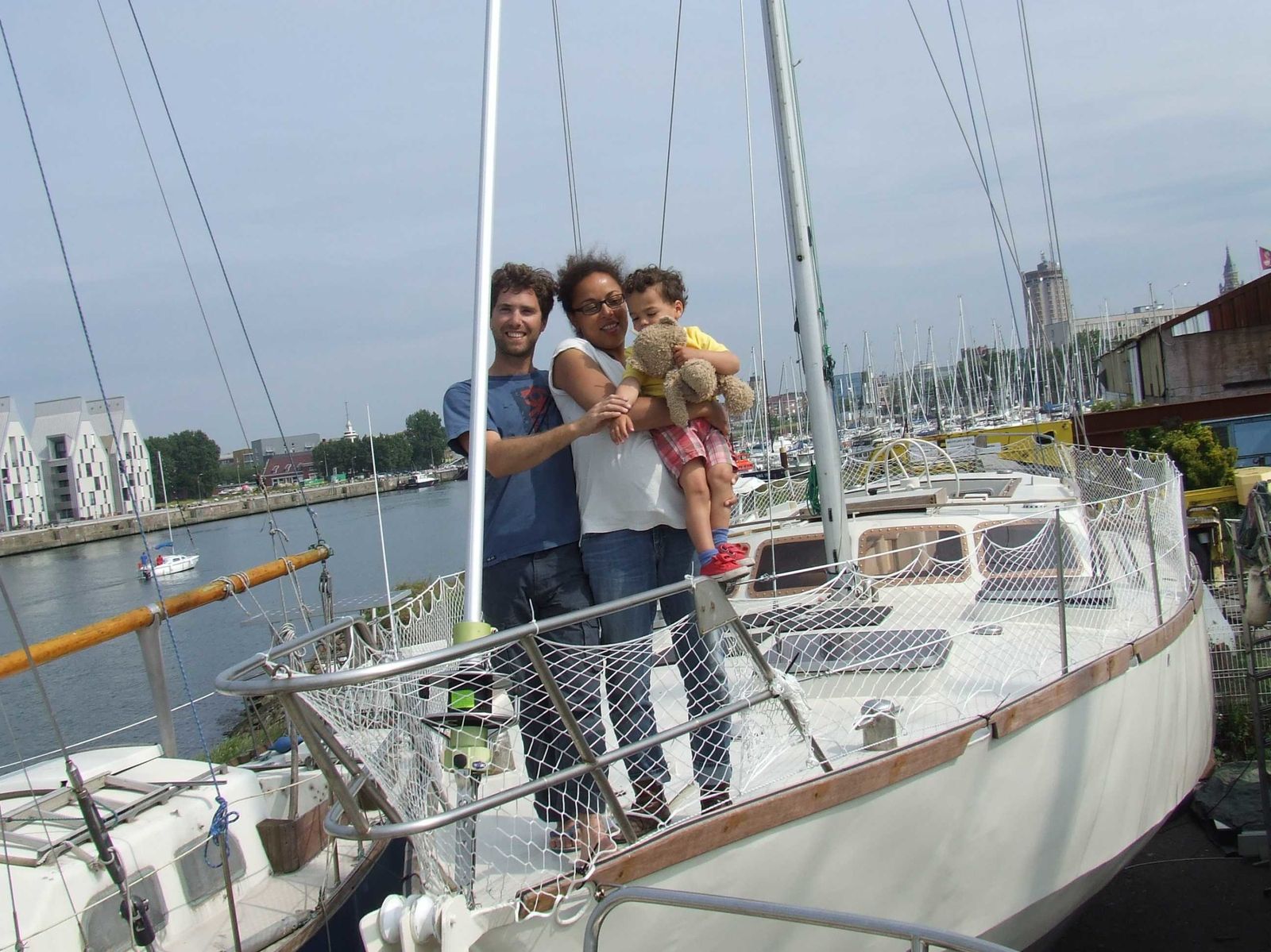 Sécurité : enfant à bord Nous ne sommes pas encore sur l'eau mais Félix, notre petit mousse de 2 ans et demi, nous suit sur le chantier. Et comme il est plutôt agile et n'a pas le vertige, il adore monter en haut de l'échelle de 3 mètres pour nous rejoindre...